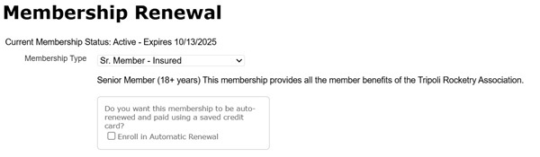 Senior Members will see the following option to opt-in for auto-renewal when they renew manually: